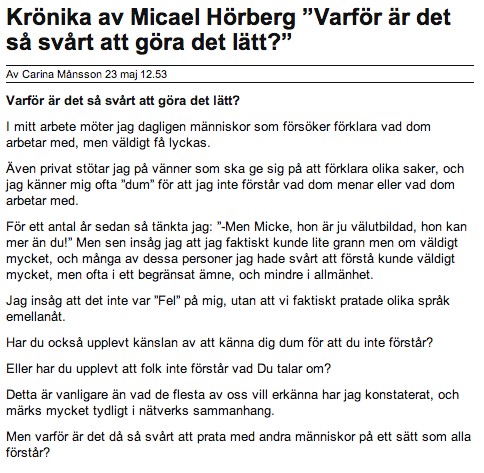 Krönika av Micael Hörberg – Varför är det så svårt att göra det lätt?
